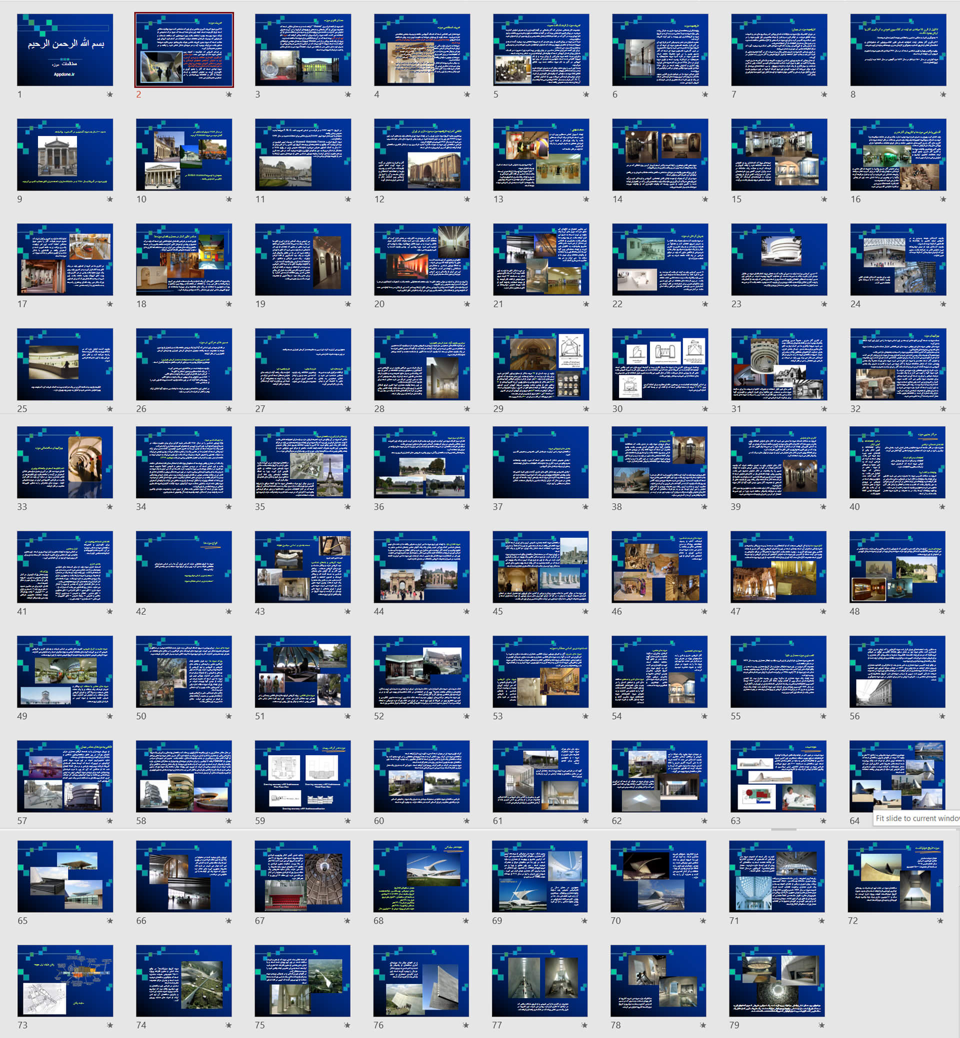 این پاور پوینت دارای 79 اسلاید پر محتوا می باشد که در هر اسلاید خود حاوی عکس و توضیحات در مورد موضوع مربوطه هست . همچنین در این پاورپوینت از انیمیشن زیبا برای تغییر اسلاید استاده شده است و به عبارت دیگر یک پاورپوینت کامل برای ارائه (رشته های معماری و عمران و رشته های مرتبط) می باشد .