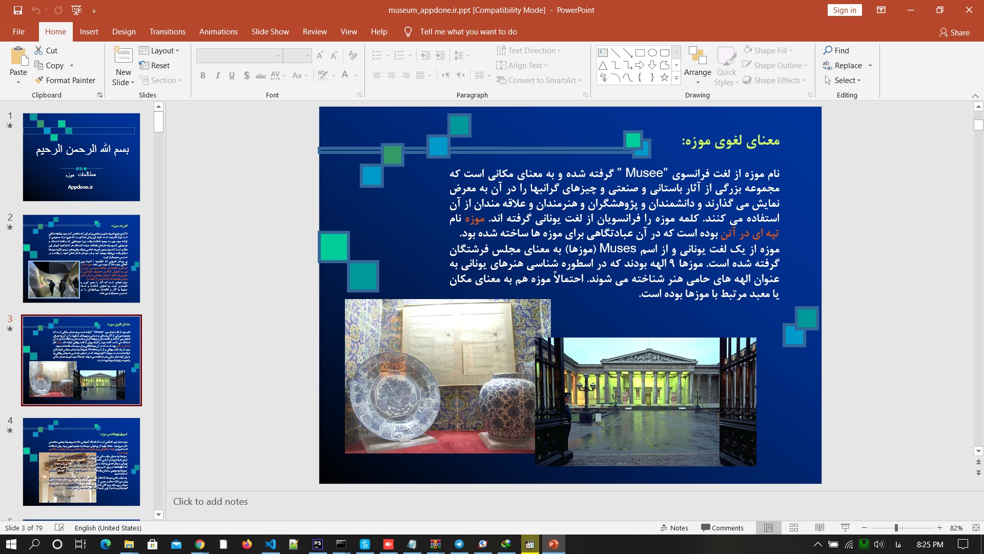 پاورپوینت آماده با موضوع مطالعات موزه یکی از کاملترین ، شکیلترین و بهترین پاورپوینت های آماده برای ارائه در رشته های دانشگاهی عمران و معماری می باشد .
