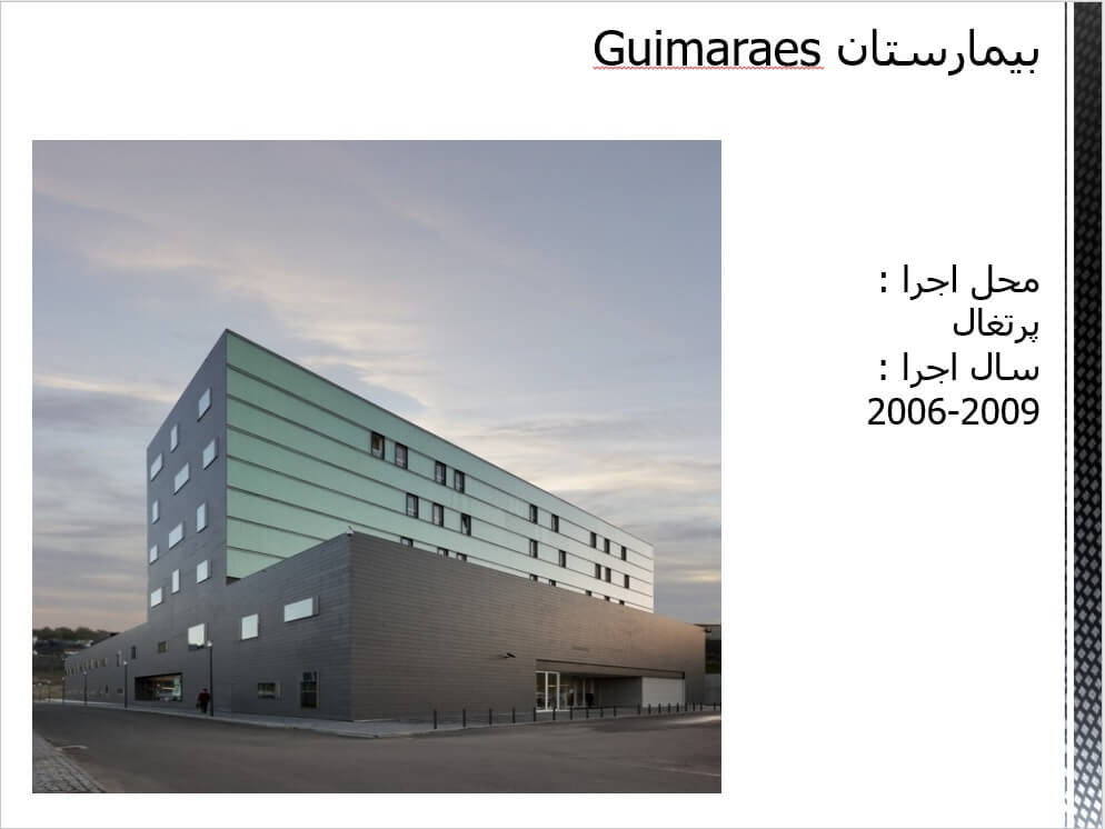 در این پاورپوینت به بررسی چهار بیمارستان خارجی به صورت مفصل پرداخته شده است و به برخی بیمارستان های خارجی دیگر نیز اشاره شده است . برای هر چهار بیمارستان ذکر شده در قسمت پایین نقشه ها و پلان های موجود نیز در این پاورپوینت وجود دارد .